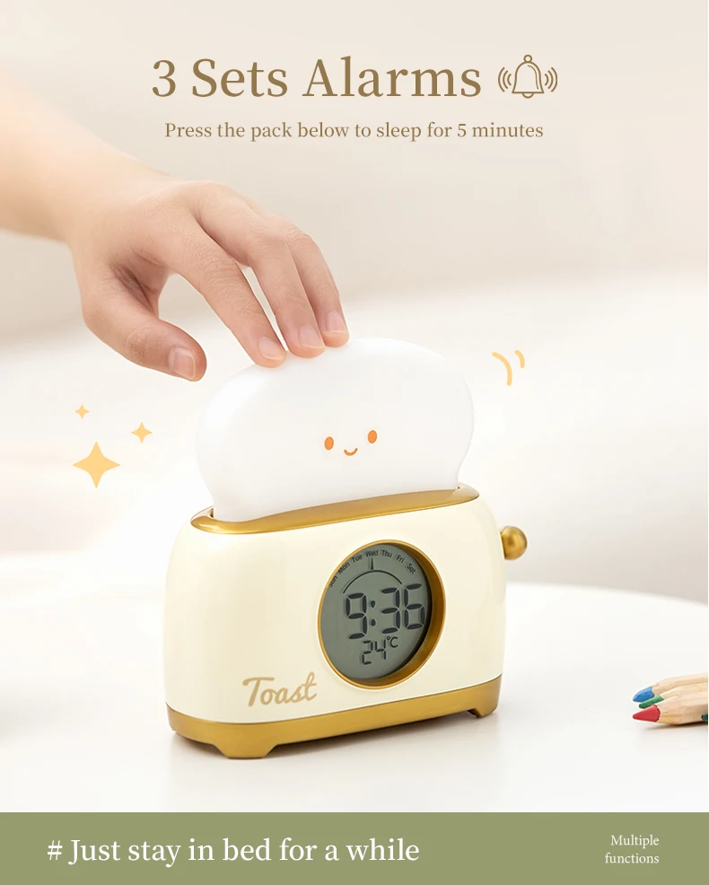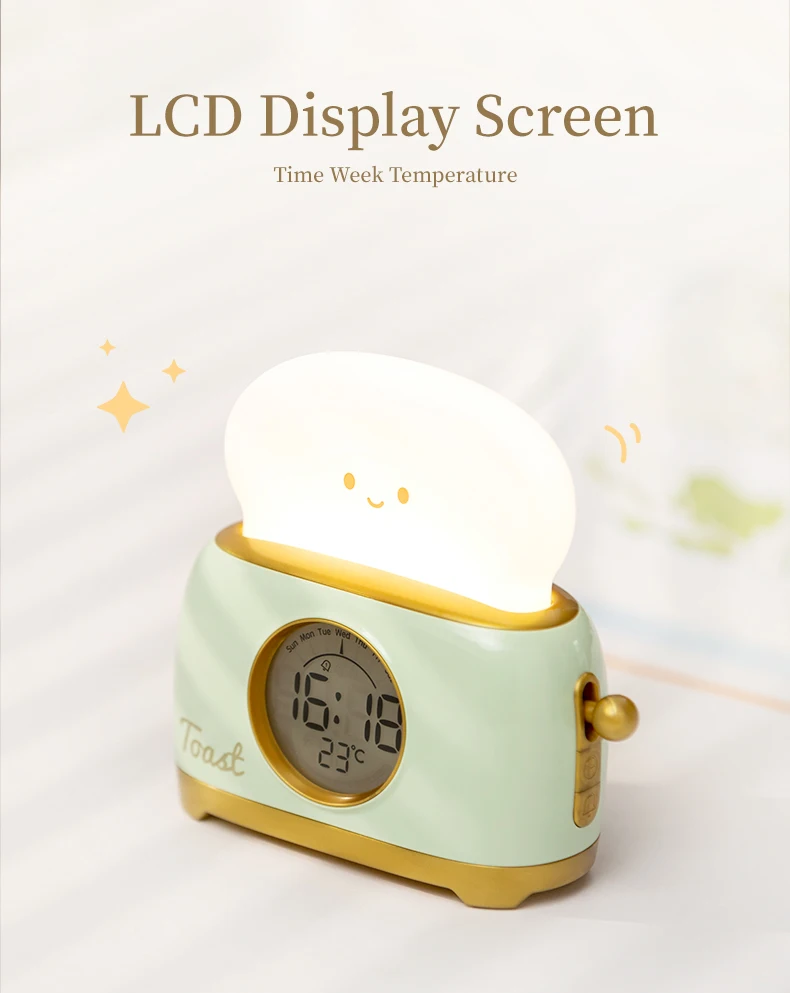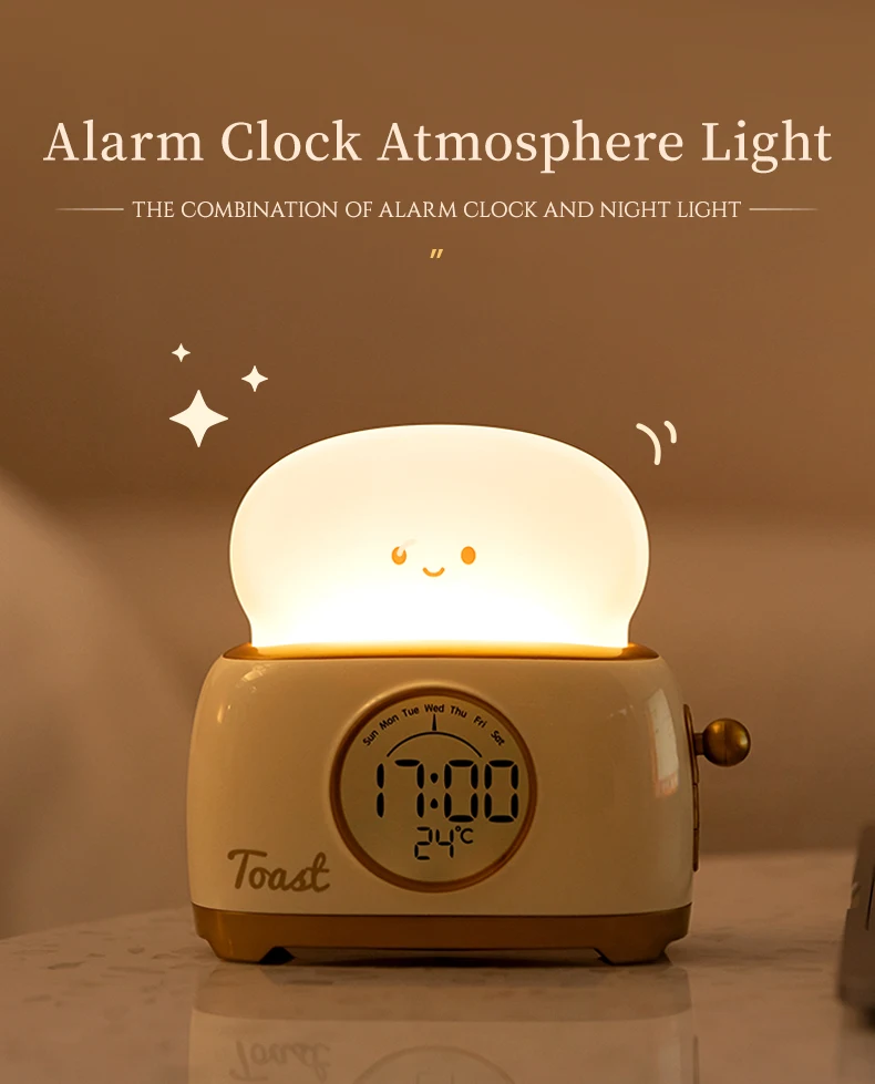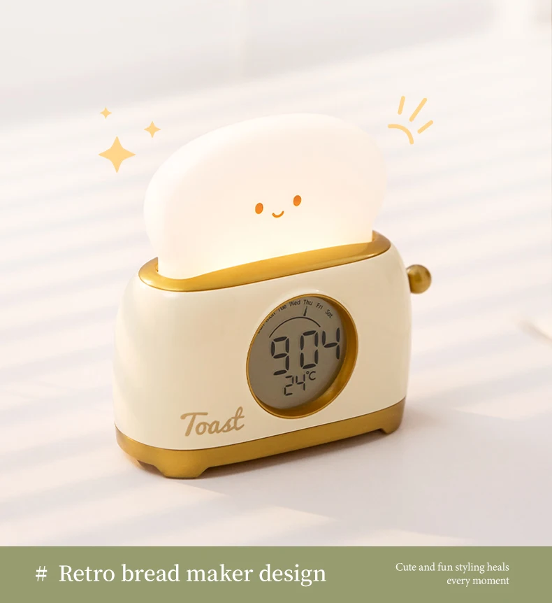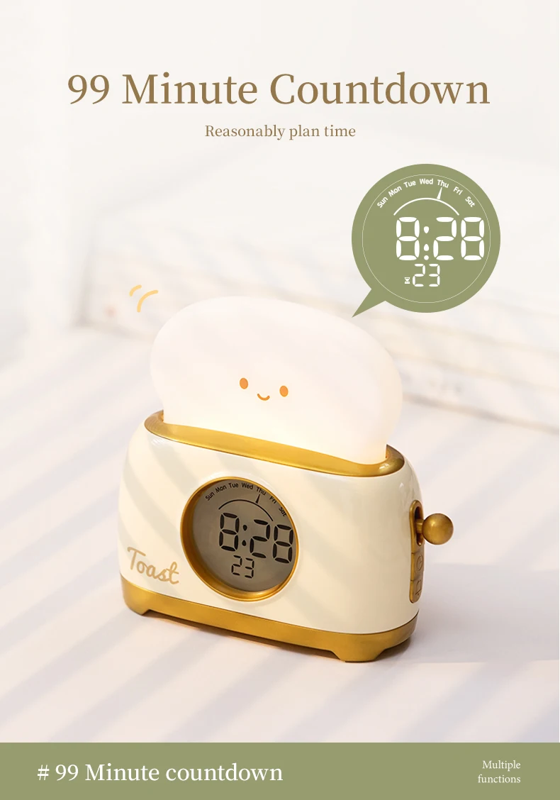 Toaster Night Light Alarm Clock Children Alarm Clock Bedside Luminous Clock Charging Bedroom Night Lamp Decoration Children Gift