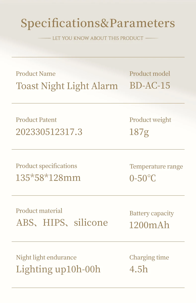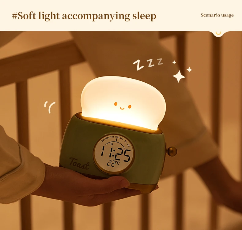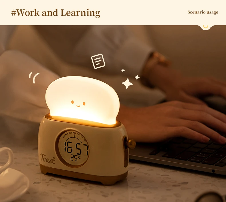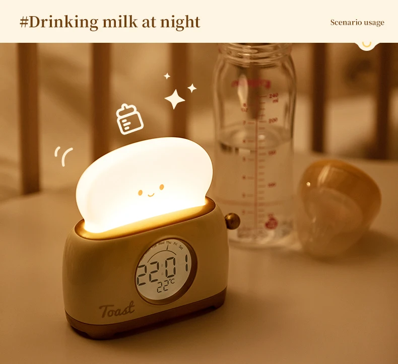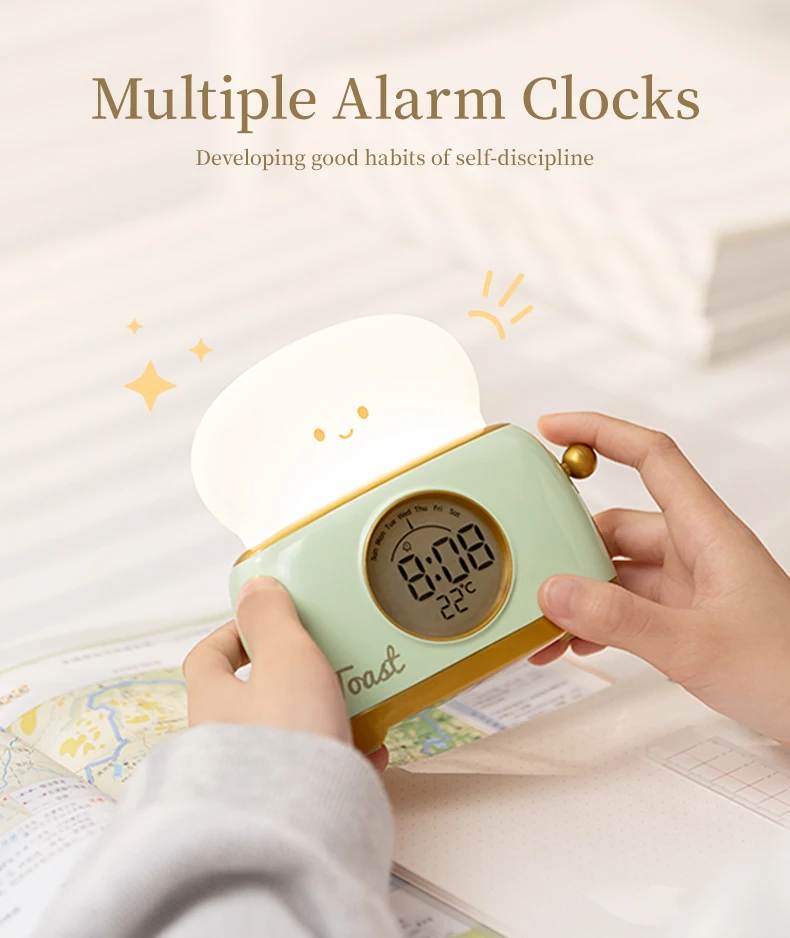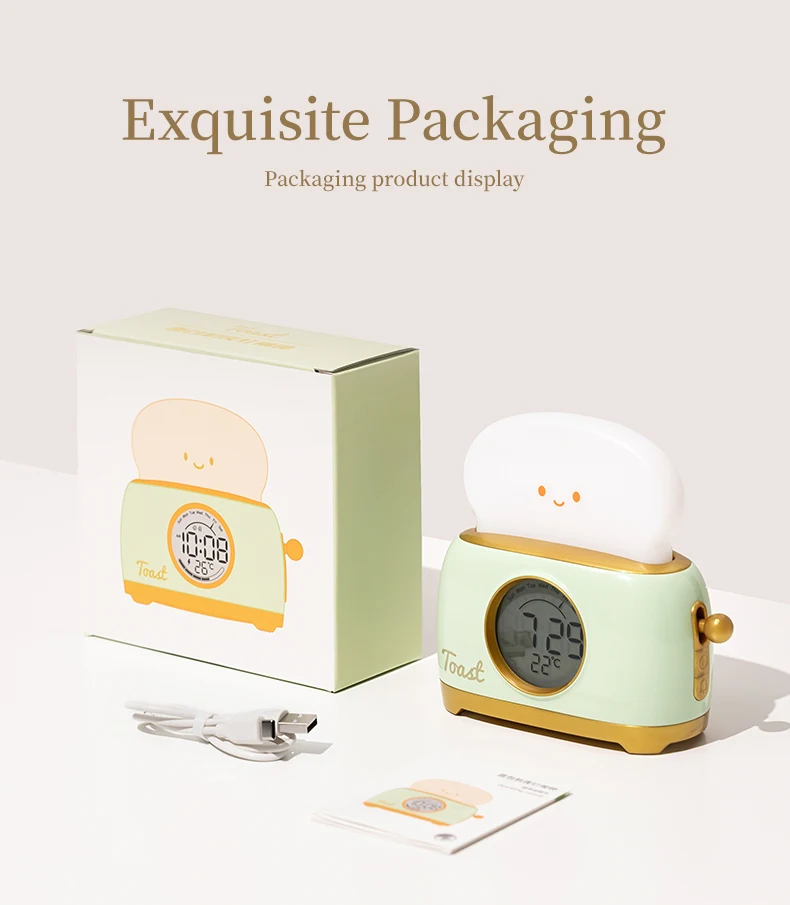 Toaster Night Light Alarm Clock Children Alarm Clock Bedside Luminous Clock Charging Bedroom Night Lamp Decoration Children Gift